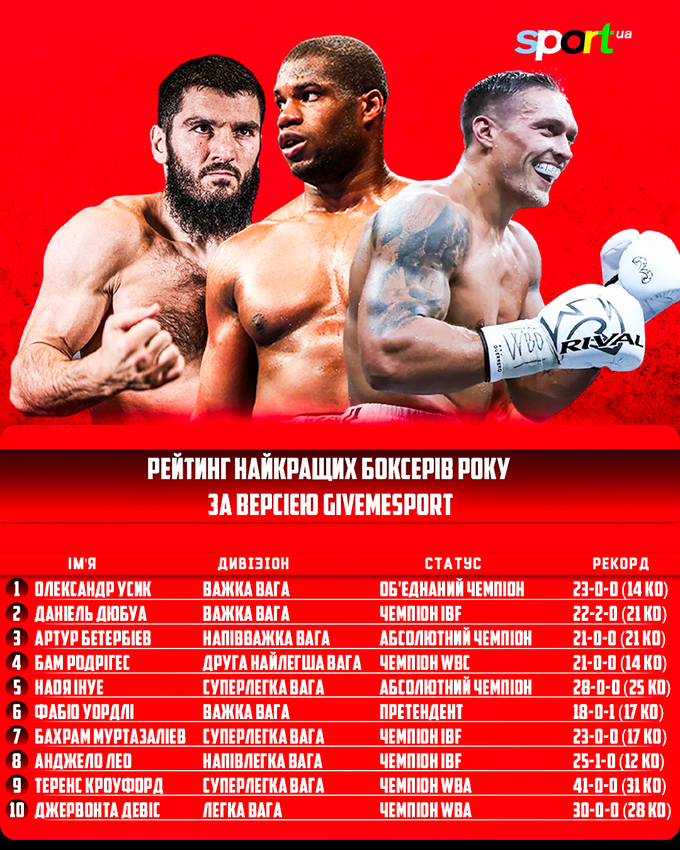Рейтинг лучших боксеров в 2024 году по версии портала GiveMeSport