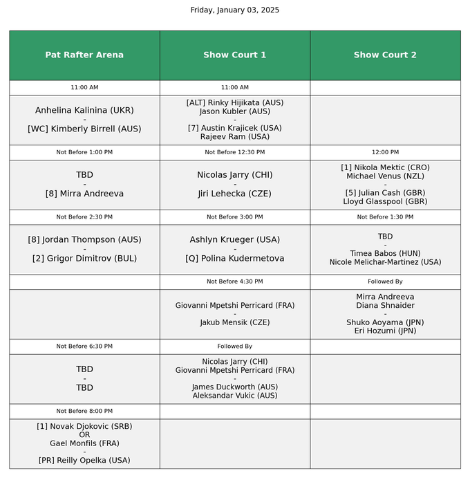 Pat Rafter Arena. 1-й запуск (не ранее 03:00 по Киеву)