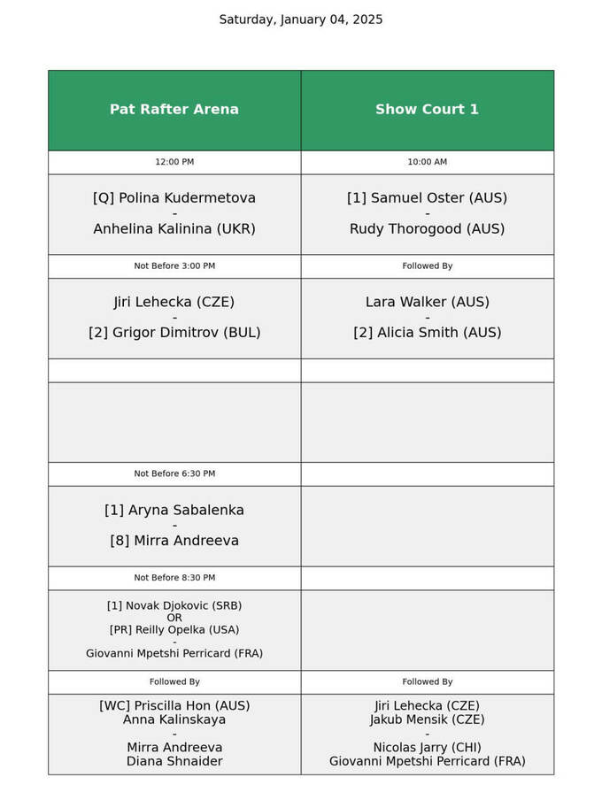 Pat Rafter Arena. 1-й запуск (не ранее 04:00 по Киеву)