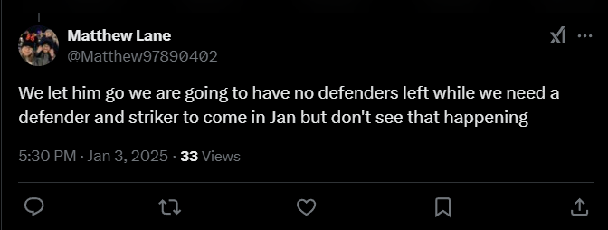 Matthew Lane: «Если мы его отпустим, у нас не останется защитников, а нам нужно привлекать защитника и нападающего в январе, но не думаю, что это произойдет».