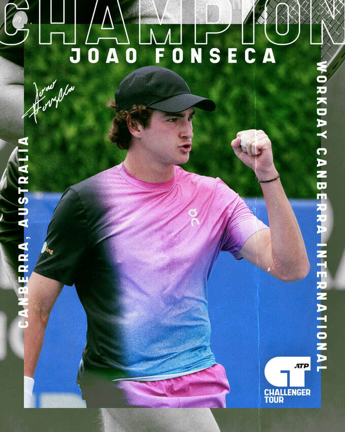 18-летний бразильский теннисист Жоау Фонсека (АТР 145) стал победителем хардового челленджера в Канберре, Австралия.