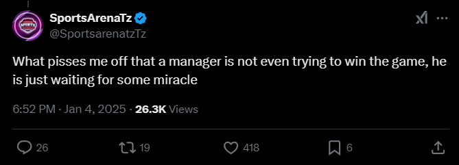 SportsArenaTz: «Что меня бесит, так это то, что тренер даже не пытается выиграть игру, он просто ждет какого-то чуда».