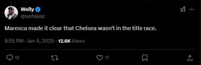 Welly: «Мареска ясно дал понять, что «Челси» не участвует в гонке за титул».