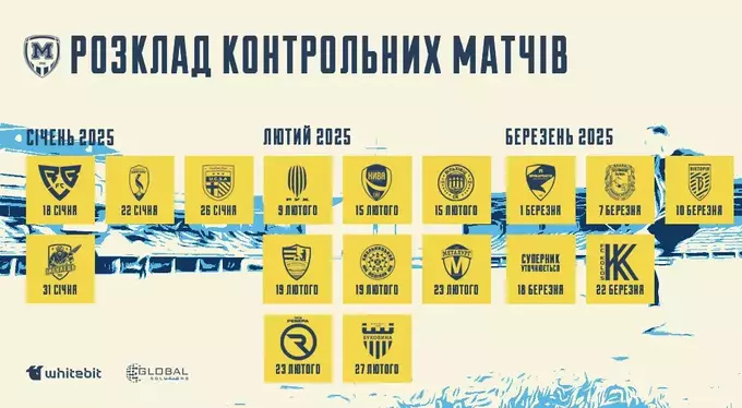 В марте подопечные Патрика ван Леувена проведут матчи против «Прикарпатья», «Куликова-Белки», «Виктории», «Колоса» и еще один соперник будет определен позже.