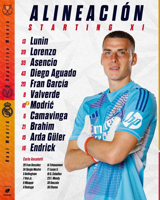 Наставник «Реала» Карло Анчелотти выбрал стартовый состав на этот матч. Украинский голкипер «Реала» Андрей Лунин вернулся в стартовый состав «галактикос».