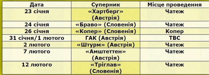 С 23 января по 12 февраля Рух сыграет контрольные матчи против Хартберга, Браво, Копера, ГАКа, Штурма, Амштеггена и Триглава.