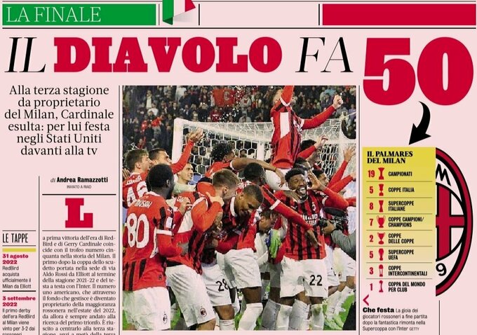 Завоевав Суперкубок Италии, Милан выиграл 50-й трофей в своей истории