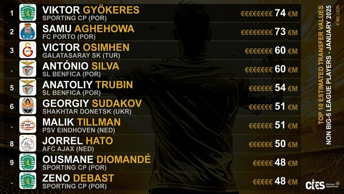 - 1. Виктор Дьекереш (Спортинг) – 74 млн евро