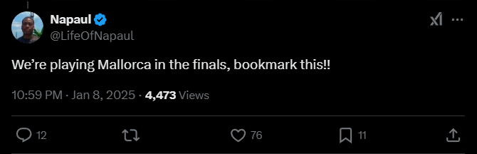 Napaul: «В финале мы играем с «Мальоркой», добавьте это в закладки!!».