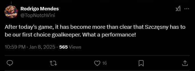 Rodrigo Mendes: «После сегодняшней игры стало более чем ясно, что Щенсны должен быть нашим вратарем первого выбора. Какое выступление!».