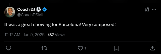 Coach DJ: «Это было великолепное выступление «Барселоны»! Очень сдержанно!».