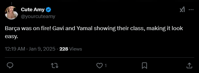 Cute Amy: «Барса» была в ударе! Гави и Ямал показали класс, и все выглядело легко».