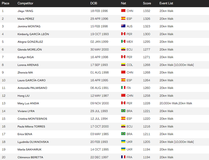 - Мировой тур по спортивной ходьбе: Ян Цзяюй – 3998