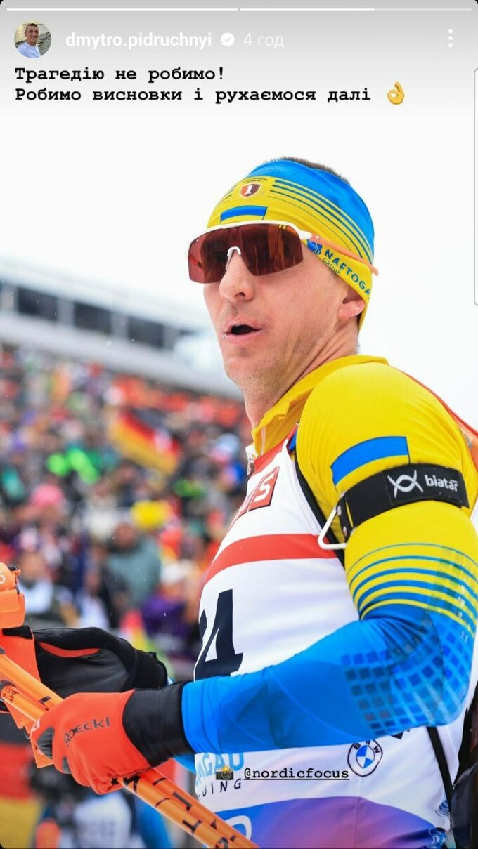 Капитан сборной Украины Дмитрий Пидручный в социальной сети Instagram высказался по поводу провальной индивидуальной гонки, которая прошла в рамках пятого этапа Кубка мира в городе Рупольдинг (Германия).