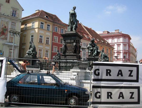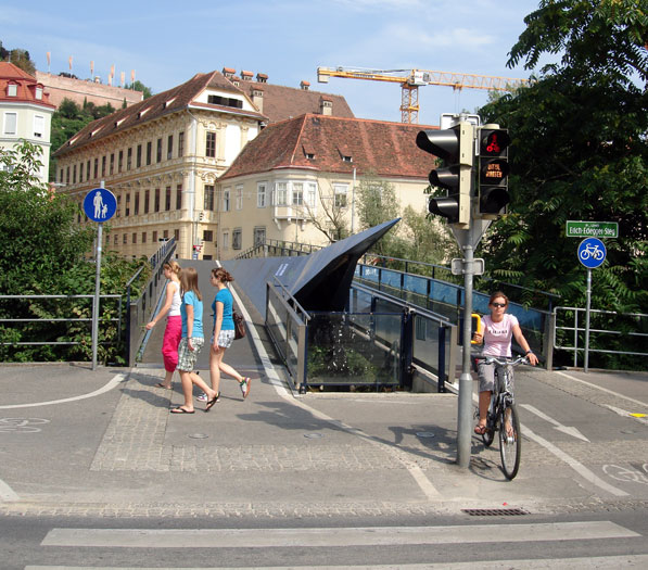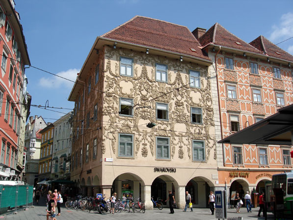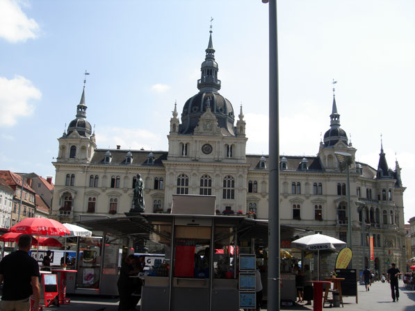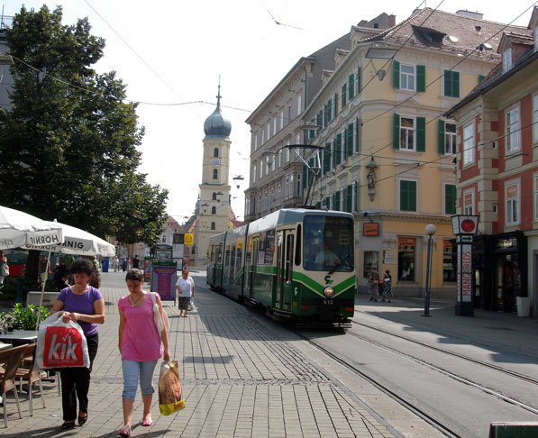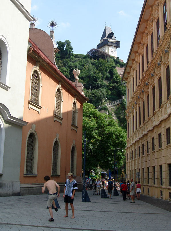 Первая же прогулка по Грацу с картой в руках показала, что второй по величине город страны все же не так уж велик. По крайней мере, весь центр (деловой и исторический) спокойно обходится пешком. Ну а большинство местных жителей предпочитает двум ногам такое же количество колес и разъезжает по специальным полосам на велосипедах. Прикованные (на всякий случай) велосипеды в Граце повсюду. Пользуются популярностью соответствующие магазины. Можно только восхититься. И удобно, и полезно для здоровья. Как говорил почтальон Печкин, «я раньше почему злой был, потому что у меня велосипеда не было». Жители Граца, может быть, по этой причине совсем не злые. Хотя для того, чтобы быть добрым, достаточно и просто быть жителем Граца. Кризис их, как Богдана Титомира, практически не касается (хоть и по другой причине), а когда есть достаток, инстинкты отступают и человеку легко и приятно быть порядочным.