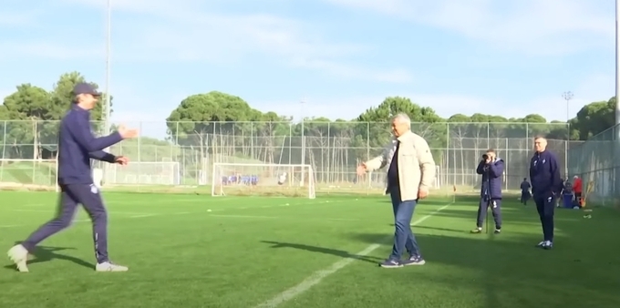 Бывший наставник Динамо Мирча Луческу посетил тренировку киевлян на сборе в Турции. Опытный тренер пообщался с игроками и наставником Александром Шовковским.