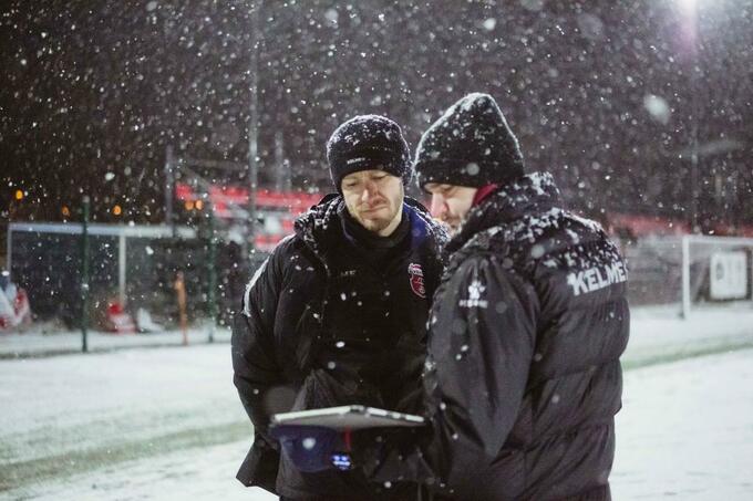 ФОТО. Обильный снегопад. Верес провел тренировку на заснеженном поле базы