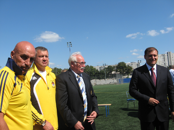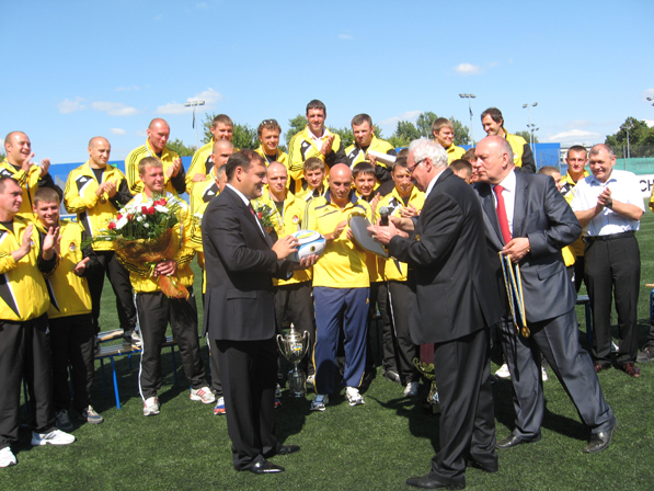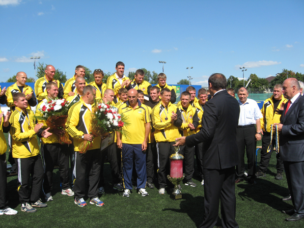 Затем выступил мэр города Михаил Добкин. Он сказал, что имя города громко звучит в тех местах, где его представители добиваются успехов. Он отметил, что Харьков не только культурная, интеллектуальная и духовная столица нашей страны, но здесь живут еще очень сильные люди, имеющие собственное достоинство. Михаил Маркович также отметил, что вчерашняя победа «Олимпа» - это очередной вклад в копилку возрождения былой спортивной славы нашего родного города. Он поблагодарил главного тренера «Олимпа» Валерия Владимировича Кочанова. В ответ Кочанов и Джангирян вручили мэру регбийный мяч и пожелали ему иногда с ним тренироваться.
