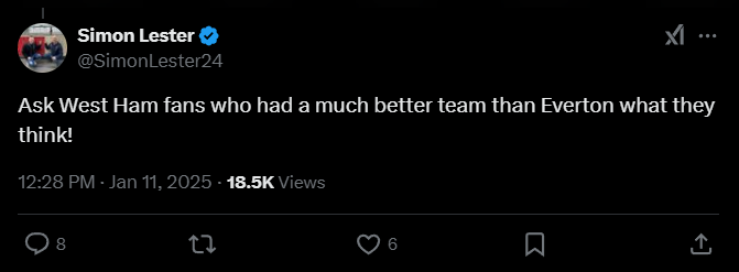 Simon Lester: «Спросите фанатов «Вест Хэма», у которых была команда намного лучше, чем «Эвертон», что они думают!».