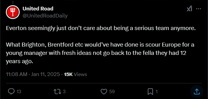 United Road: «Эвертон», похоже, больше не заботится о том, чтобы быть серьезной командой. «Брайтон», «Брентфорд» и подобным клубам следовало бы искать молодого тренера с новыми идеями в Европе, а не возвращаться к тому, кто был у них 12 лет назад».