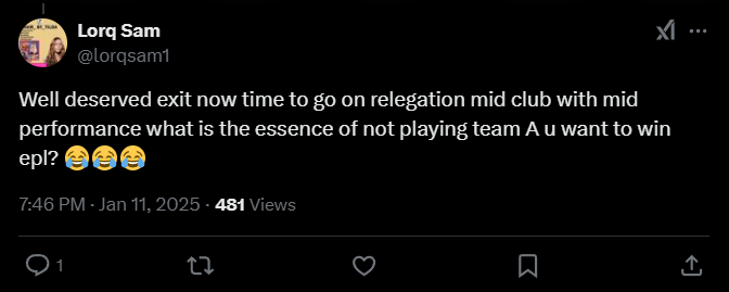 Lorq Sam: «Заслуженный вылет, теперь время стать клубом-середняком с посредственными результатами. В чем смысл не ставить основную команду, хотите выиграть АПЛ?».