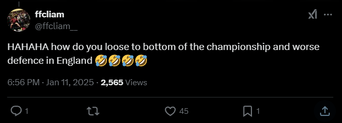 Ffcliam: «Хахаха, как можно проиграть команде с самым низким рейтингом и худшей защитой в Англии?».