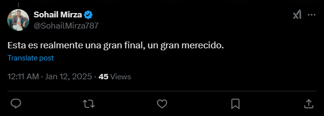 Sohail Mirza: «Это действительно великое финальное событие, заслуженная победа».