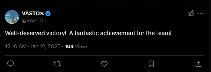 VASTO_e: «Заслуженная победа! Великолепное достижение для команды!».