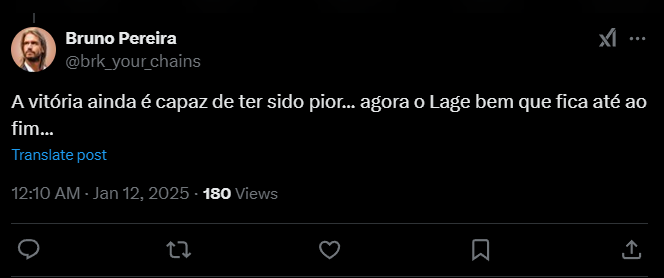 Bruno Pereira: «Победа все равно могла бы быть хуже... теперь Лаже, похоже, останется до конца».