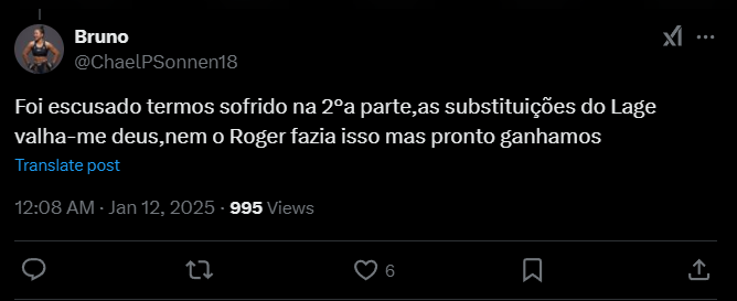 Bruno: «Не следовало нам так мучиться во второй половине, замены Лаже, боже мой, даже Рогер такого не делал, но ладно, выиграли».