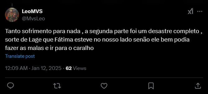 LeoMVS: «Такое страдание ни к чему не привело, вторая половина матча была полной катастрофой. Повезло Лаже, что судьба была на нашей стороне, иначе он мог бы собрать свои вещи и уйти».