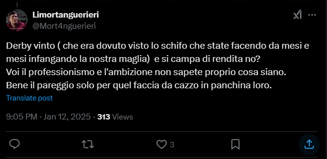 Limortanguerier: «Дерби выиграно (что было необходимо, учитывая тот ужас, который вы показываете уже месяцы, позоря нашу команду), и теперь будем жить на прошлых заслугах, да? Вы не понимаете, что такое профессионализм и амбиции. Ничья хороша только из-за того человека на их скамейке».