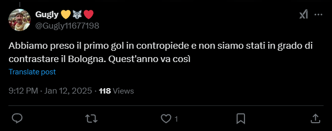 Gugly: «Мы пропустили первый гол в контратаке и не смогли противостоять «Болонье». В этом году все так».