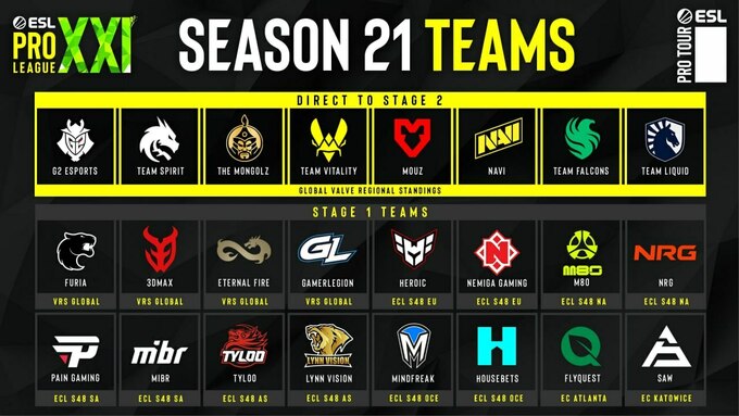 12 команд получили приглашения на ESL Pro League Season 21, чтобы присоединиться к 12 другим, которые квалифицировались через лиги и турниры ESL Challenger.
