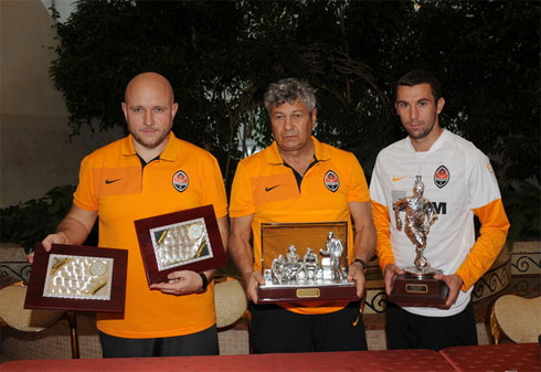 На сегодняшний поединок Лиги Европы против «Сивасспора» наставник «Шахтера» Мирча Луческу и капитан «горняков» Дарио Срна выйдут в ранге лауреатов двух престижных премий Премьер-лиги Украины — «Лучшего тренера» и «Лучшего игрока» сезона 2008/09. Награждение прошло в пятницу на СТБ «Кирша» в рамках дня открытых дверей, приуроченного к предстоящему матчу на Суперкубок УЕФА с «Барселоной». Призы не переходящие, обретают своих владельцев навсегда. Индивидуальный характер наград подчеркивают памятные таблички, украшающие их основания, с именами и указанием сезона.