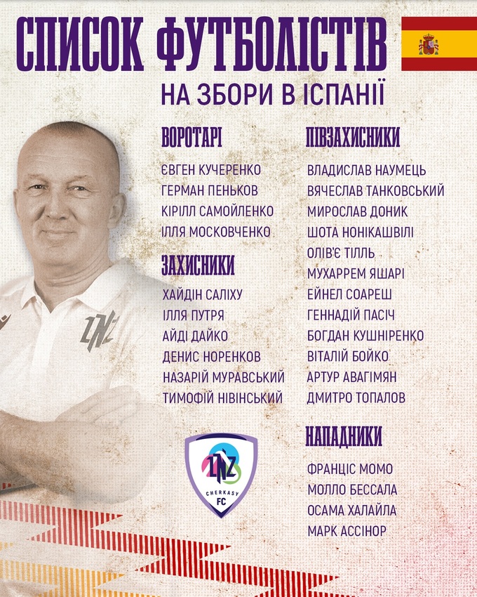 Интересно, что тренерский штаб Романа Григорчука взял с собой на учебно-тренировочные сборы 15-летнего игрока. В Испанию отправился Мирослав Доник, родившийся 8 января 2010 года и выступающий за ЛНЗ U-16 в ДЮФЛУ.