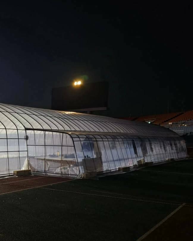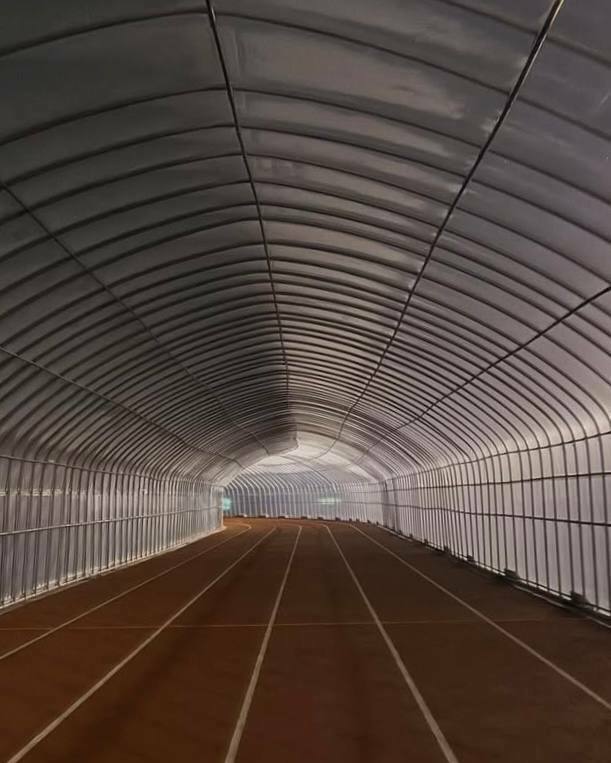 В южнокорейском городе Ансан решили очень креативно подойти к решению этого непростого вопроса. Пока в национальном футбольном чемпионате перерыв, то корейцы стадион на 35 000 мест решили превратить во временный манеж. Для этого они построили теплицы и разместили их на шести дорожках. И даже разместили столы с питанием, для размещения каких-то вещей.