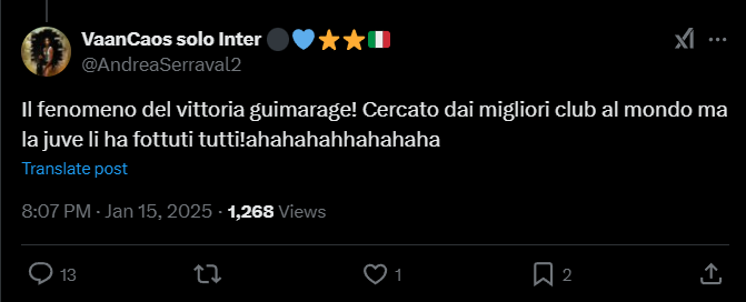 AndreaSerraval2: «Феномен из «Витории Гимараеш»! Его искали лучшие клубы мира, но «Ювентус» перехватил его у всех!».