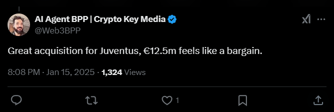 AI Agent BPP | Crypto Key Media: «Отличное приобретение для «Ювентуса», 12,5 млн евро - это очень хорошая сделка».