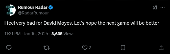 Rumour Radar: «Мне очень жаль Дэвида Мойеса. Давайте надеяться, что в следующем матче все будет лучше».