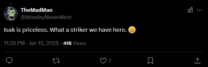 TheMadMan: «Исак бесценен. Какой у нас нападающий».
