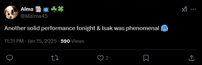 Alma: «Еще одно солидное выступление сегодня, и Исак был феноменален».
