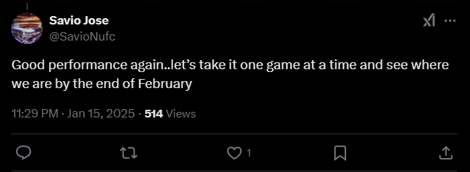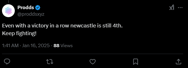 Prodds: «Даже с победой подряд «Ньюкасл» остается на 4-м месте. Продолжайте бороться!».