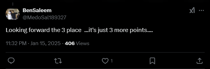 BenSaleem: «С нетерпением ждем 3 место... это всего лишь еще 3 очка».