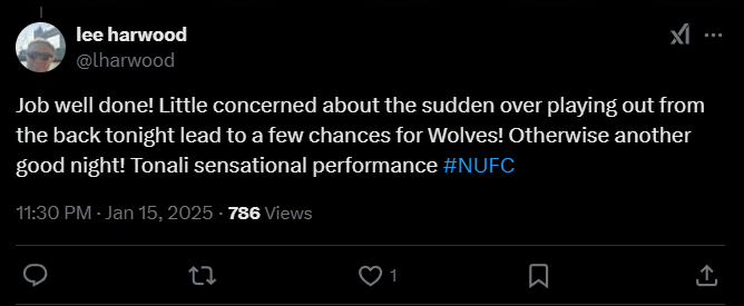 lee harwood: «Работа сделана хорошо! Немного обеспокоен тем, что внезапная игра сзади сегодня привела к нескольким шансам для «Волков»! В остальном – еще один хороший вечер! Сенсационное выступление Тонали».