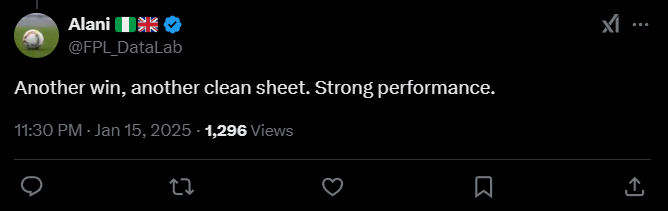 Alani: «Еще одна победа, еще один чистый лист. Сильное выступление».