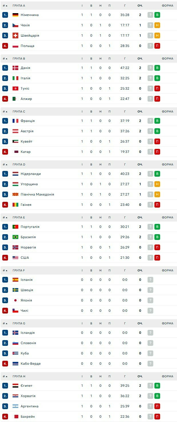 - Нидерланды – Гвинея – 40:23 (21:8)