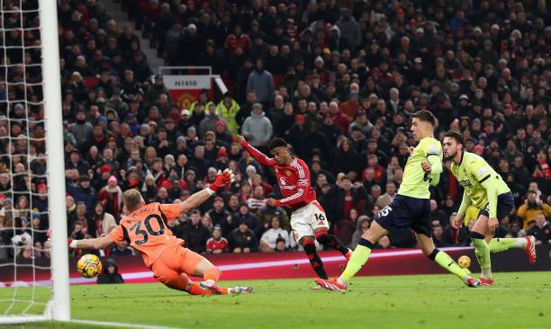 Первый тайм завершился поражением хозяев со счетом 0:1 из-за автогола Угарте. Вторая половина встречи могла оказаться такой же провальной, особенно после промаха Антони с нескольких метров, но хет-трик Амада Диалло за последние 15 минут матча спас «манкунианцев».