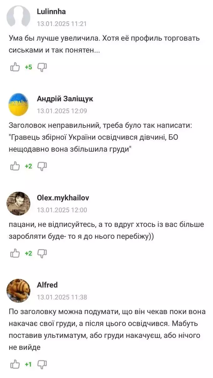 Невеста защитника австрийского клуба «ЛАСК» и сборной Украины Максима Таловерова, Елизавета, отреагировала на комментарии пользователей Sport.ua в новости про предложение руки и сердца футболиста.