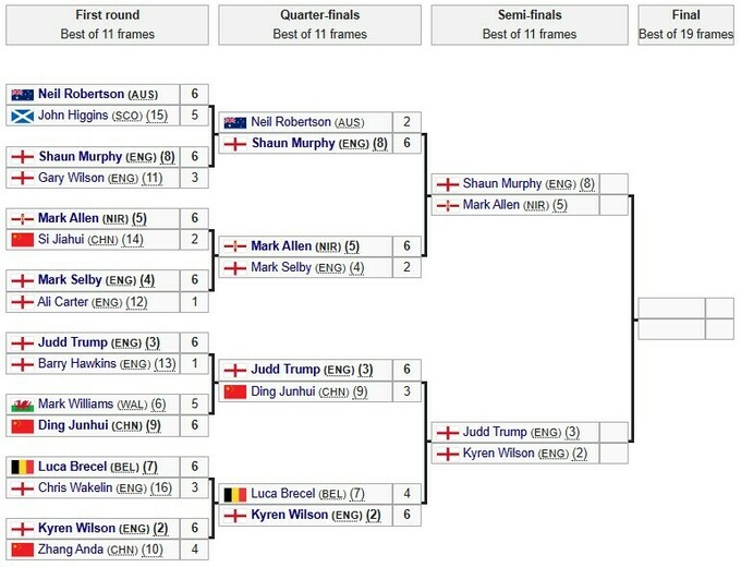Полуфиналы: Джадд Трамп – Кайрен Уилсон, Шон Мерфи – Марк Аллен